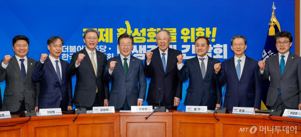 한경협에서는 류진 회장을 비롯해 김창범 상근부회장, 정철 한국경제연구원 원장 겸 한경협 연구총괄대표, 추광호 한경협 중소기업협력센터 소장, 이상호 경제산업본부장이 자리했다. 더불어민주당에서는 이재명 대표와 진성준 정책 위원장, 정성호·유동수·홍기원·위성락 의원 등이 참석했다.
