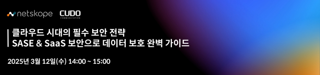 발표를 맡은 쿠도커뮤니케이션의 장신검 부장은 "이번 웨비나에서는 SASE/SSE의 개념과 SaaS 보안의 필요성을 쉽게 이해할 수 있도록 설명하고, Netskope 기반의 보안 전략 및 실제 사례를 통해 기업들이 효과적인 보안 운영 방안을 모색할 수 있도록 도움을 드릴 예정"이라고 전했다.