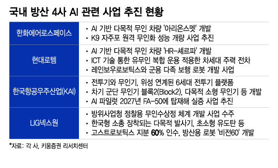 이한결 키움증권 연구원은 "올해 이후에도 유럽, 중동, 아태, 남미 지역을 중심으로 국내 방산 업체들의 수출 사업은 활발하게 진행될 것으로 예상된다"며 "중장기적인 관점에서 방산 업체들이 지속적으로 글로벌 시장에서 수출 경쟁력을 확보하기 위해선 AI 기술 경쟁력을 갖춰야 할 필요가 있다"고 분석했다.