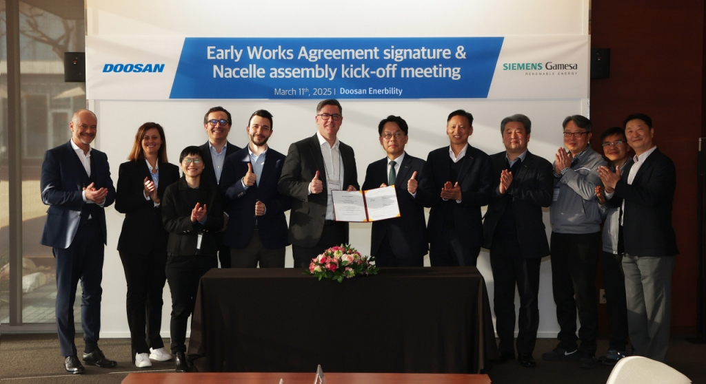 앞서 2022년 국내 해상풍력시장 확대를 위해 전략적 파트너십을 맺은 양사는 지난 11일 창원 풍력발전 신규 공장을 위한 사전업무착수협약(EWA)을 체결했다. 두산에너빌리티는 창원공장 내 14㎿ 해상풍력발전기 제조공장 및 생산체계 구축을 위한 설계에 착수한다. 지멘스가메사는 두산에너빌리티가 해상풍력발전기의 나셀 조립 수행력을 강화할 수 있도록 기술 이전과 인력 지원을 추진하고 교육 훈련을 진행한다.