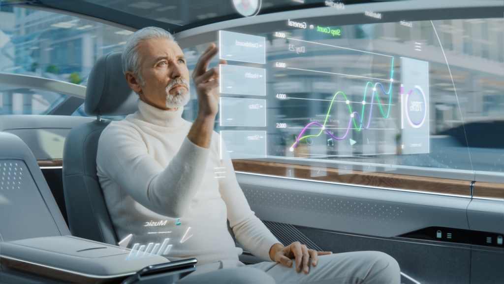 애니랙티브에 따르면 자동차 전면 유리에 제공되는 헤드업 디스플레이(HUD)에 이 기술을 적용하면 운전자나 탑승자가 멀리서도 가상 터치 기능으로 제어조작계를 조작할 수 있어 편의성을 높인다.