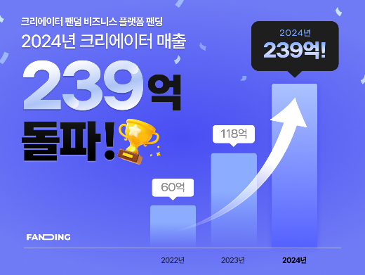 팬덤 비즈니스 플랫폼 팬딩은 24년 가입자 100만명 돌파에 이어 매출 239억 원으로 23년 대비 103% 상승한 역대 최대 매출을 경신했다고 28일 밝혔다.