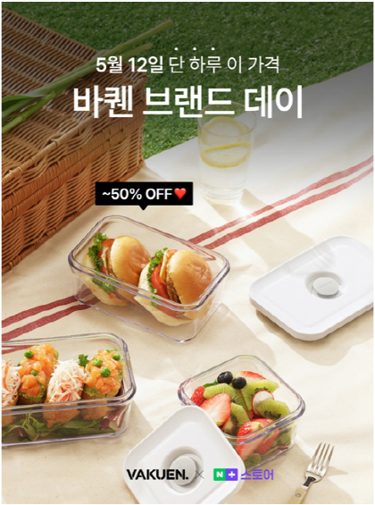진공 기술의 선두주자 진공밀폐용기 브랜드 바퀜(VAKUEN)이 12일 네이버 쇼핑과 함께 특별한 브랜드 데이를 진행한다고 밝혔다.