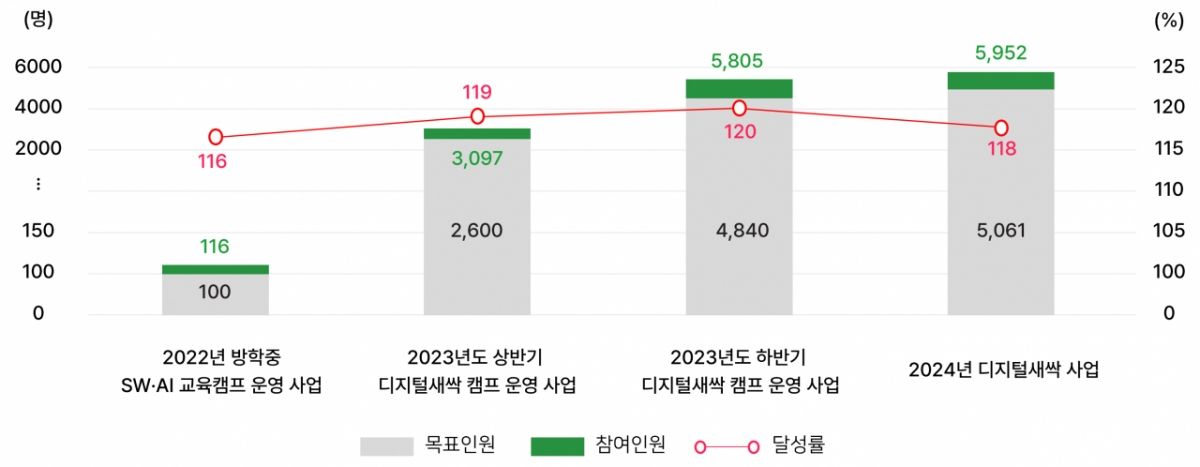 디지털새싹 사업은 교육부와 17개 시·도교육청, 한국과학창의재단 등이 협력해 전국 초·중·고교생에게 소프트웨어와 인공지능 교육 기회를 제공하는 대규모 프로젝트다. 2022년에 시작된 이래 학생들의 디지털 교육 격차 해소와 디지털 인재 양성을 목표로 내세우며 작년까지 누적 70만여 명이 참여하는 등 큰 호응을 얻었다.