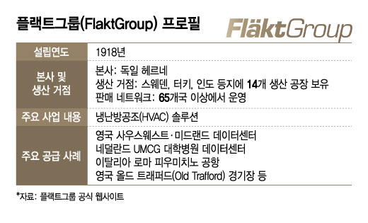 1918년 설립된 유럽 최대 HVAC(냉난방공조) 기업인 플랙트는 연 7억유로(1조1000억원) 이상의 연 매출을 올린다. 특히 글로벌 대형 데이터센터 공조 시장에서 뛰어난 제품 성능과 안정성, 신뢰도 있는 서비스 지원 등으로 빠른 성장세를 보인다.