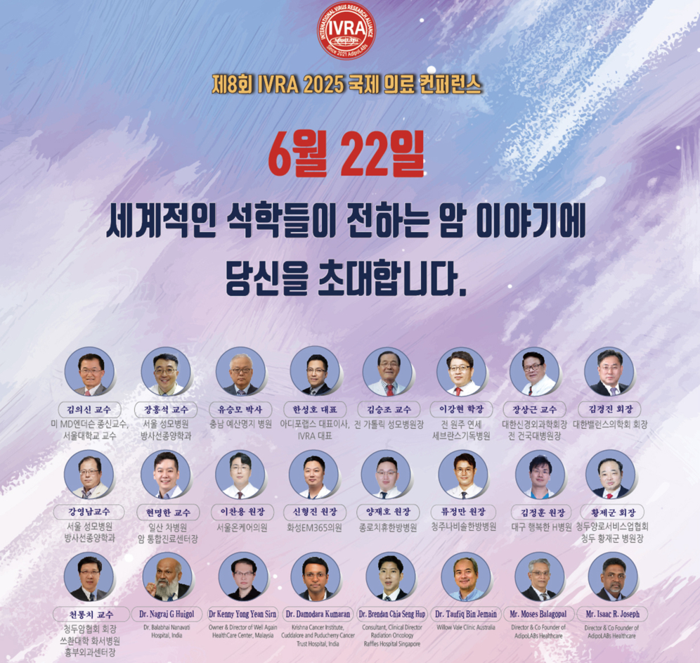 '제8회 IVRA 2025 국제 의료 콘퍼런스'는 사단법인 국제바이러스연구연합(IVRA) 조직위원회가 주최하고 (주)아디포랩스가 후원하는 학술대회다. 국내 의료 전문가 200여명과 세계 20여개국 의료 석학 150여명이 참석할 계획이다. 일반인 참여자는 1000여명을 받을 예정이다.