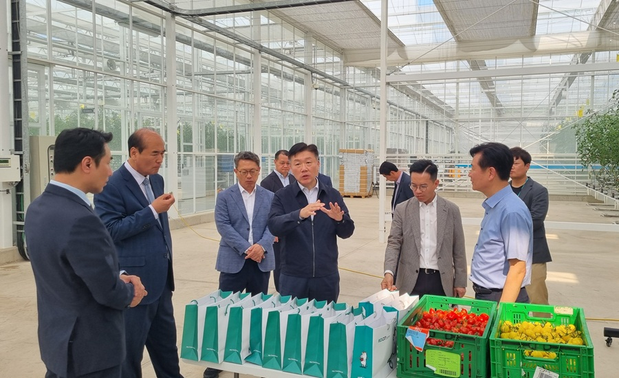 스마트팜 토털 솔루션 기업 케이에스팜(대표 강성민)은 최근 박범수 농림축산식품부 차관이 자사에서 실증 운영 중인 상주 스마트팜 혁신밸리 실증단지 내 온실을 방문했다고 30일 밝혔다.