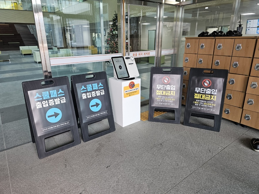 스쿨패스는 학교에 설치된 키오스크에서 네이버, 카카오, 패스 앱(애플리케이션) 등으로 본인을 인증하는 시스템이다. 방문자는 본인 인증 후 출입증 라벨을 상의에 부착해야 한다. 이를 통해 멀리서도 방문자 신원 인증 여부를 확인할 수 있다.