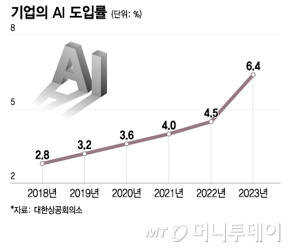 대한상공회의소의 연구에 따르면 2023년 국내기업의 AI 도입률은 6.4%로, AI를 도입한 기업의 부가가치가 약 7.6% 증가한 것으로 나타났다. 특히 대기업의 AI 도입률은 65.1%에 이른다는 연구결과(산업통상자원부)도 있다.