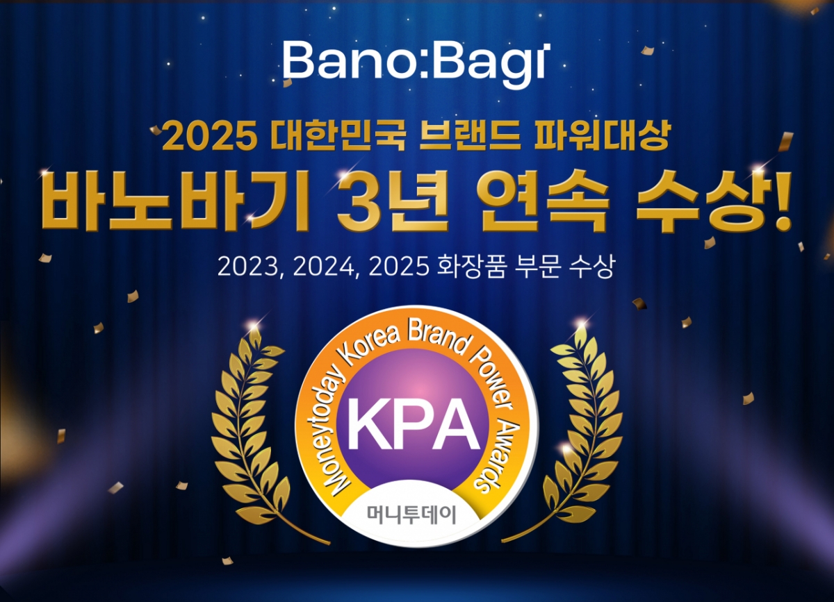 리얼 더마 코스메틱 브랜드 바노바기 코스메틱(BANOBAGI Cosmetic)이 머니투데이 '2025 대한민국 브랜드파워대상'에서 화장품 부문 3년 연속 수상의 영예를 안았다. 이 시상식은 산업 경쟁력 제고와 국가 경제 발전에 기여한 우수 브랜드를 선정하는 행사로, 바노바기의 브랜드 경쟁력을 다시 한 번 입증했다.