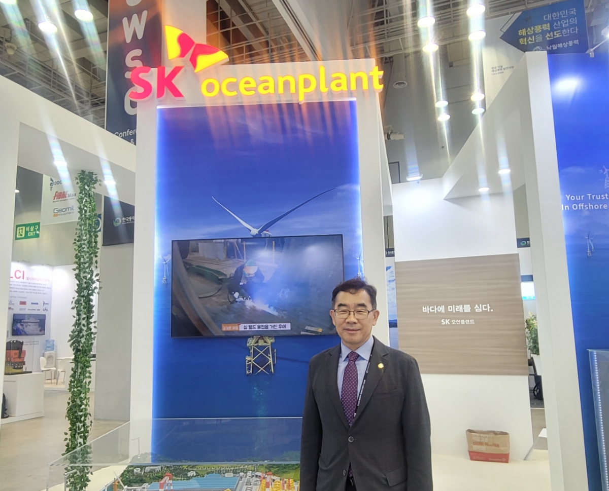 해상풍력 하부구조물을 만드는 SK오션플랜트의 이승철 대표는 2일 부산 벡스코에서 열린 해상풍력 공급망 컨퍼런스 전시회에서 머니투데이와의 인터뷰를 갖고 정책에 대한 신뢰 제고와 한국에 풍력시장이 실제로 조성되는 게 가장 시급한 과제라 밝혔다. 인터뷰는 한국풍력산업협회의 회장사(모회사 SK에코플랜트)의 입장에서 한국 해상풍력 업계 전반의 목소리를 담았다.