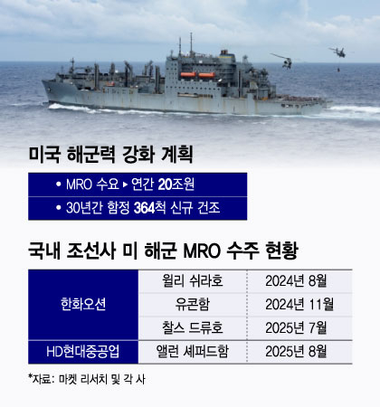 다른 조선업계 관계자는 "한국 조선업체들은 미 군함 건조·수리를 해외에 맡기지 못하도록 규정한 미국 '반스-톨레프슨법 수정법'으로 군수지원함 등 미 해군의 비전투함 MRO만 맡고 있다"며 "마스가를 통해 미 해군 MRO 시장에서도 신뢰를 확보해 추가 수주가 가능할 것"이라고 기대했다.