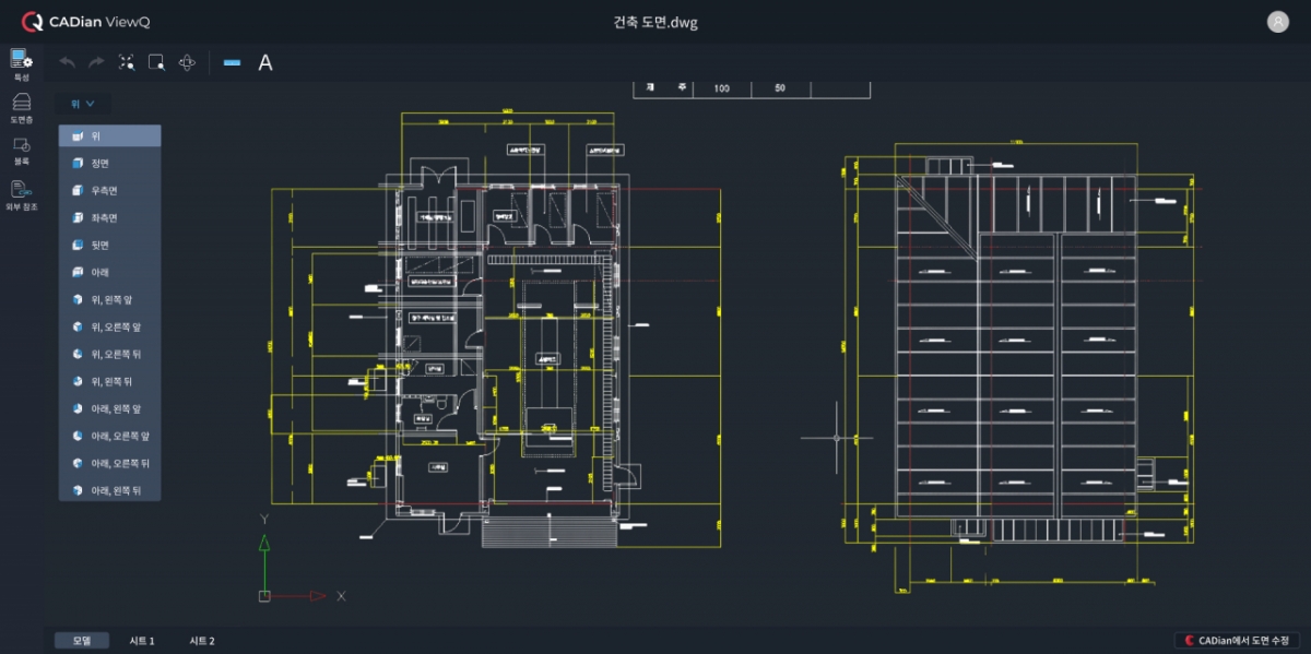 또한 'CADian ViewQ'는 웹 브라우저를 기반으로 작동한다. 크롬, 엣지, 사파리 등 주요 브라우저에서 별도 프로그램 설치 없이 도면 열람이 가능하다. △도면 확대·이동·회전 △객체 속성 정보 확인 △거리·면적 측정 △PNG·JPG 변환 △스크린 캡처 방지 등 실무자 요구사항을 반영한 기능도 제공한다.