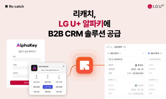 B2B(기업간거래) CRM(고객관계관리) 솔루션 '리캐치'(Re:catch) 운영사 비즈니스캔버스(대표 김우진)는 LG유플러스의 차세대 인증 보안 솔루션 브랜드 '알파키'(AlphaKey)가 리캐치를 도입해 고객 확보부터 전환, 관리까지의 전 과정을 CRM 기반으로 설계했다고 3일 밝혔다.