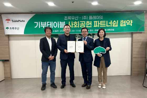 플레이잇(대표 김항주)은 지난 1일 아동복지전문기관 초록우산(회장 황영기)과 기부테이블 사회공헌 파트너십을 체결했다고 2일 밝혔다. 이날 협약식은 초록우산 본부에서 김항주 플레이잇 대표와 여승수 초록우산 사무총장, 이서영 초록우산 인천지역본부 본부장 등이 참석한 가운데 진행됐다.