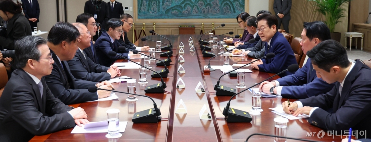 ![[서울=뉴시스] 고범준 기자 = 이재명 대통령이 16일 서울 용산 대통령실 청사에서 열린 한미 관세협상 후속 민관 합동회의에서 발언하고 있다. (대통령실통신사진기자단) 2025.11.16. bjko@newsis.com /사진=](https://thumb.mt.co.kr/cdn-cgi/image/f=avif/21/2025/11/2025111617423494565_1.jpg)