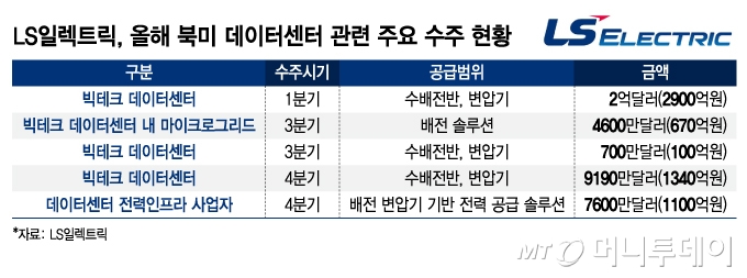 LS일렉트릭은 올해 1분기 2억달러 규모의 계약을 시작으로 지난 3분기(700만달러)에도 빅테크 데이터센터에 수배전반·변압기 공급 계약을 따냈다. 미국 시장에서 하이퍼스케일(초대형) 데이터센터에 필요한 전력 기자재를 저압부터 고압까지 모두 공급할 수 있는 업체로 올라섰다.
