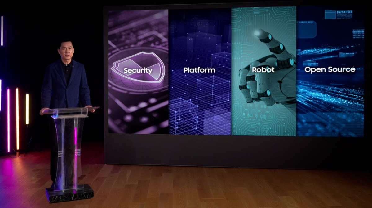 이날 삼성전자는 △AI 기반 차세대 보안 혁신 △지능형 소프트웨어(S/W) 플랫폼의 진화 △AI를 활용한 로봇 기술의 도약 △오픈소스 AI의 생태계 확장 등 인공지능 전환 시대의 4가지 핵심 기술을 소개했다. 또 리눅스 재단의 짐 젬린 의장이 최신 오픈소스 AI 기술 동향을 공유했다.