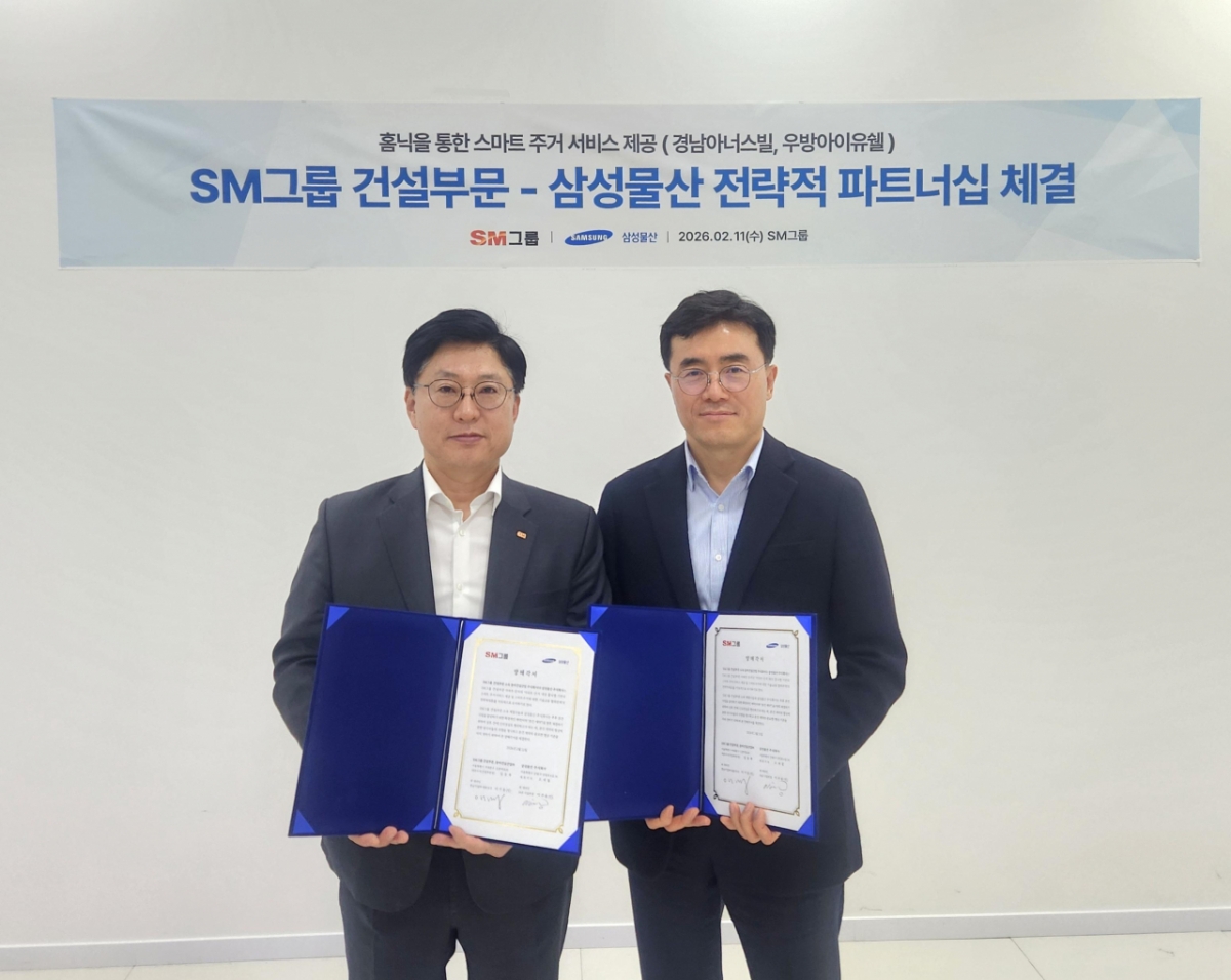 SM그룹 건설부문은 지난 11일 서울 서대문구 SM그룹 신촌사옥에서 삼성물산 건설부문과 '스마트 주거 서비스 제공 및 기술교류 협력'을 위한 양해각서를 교환했다.