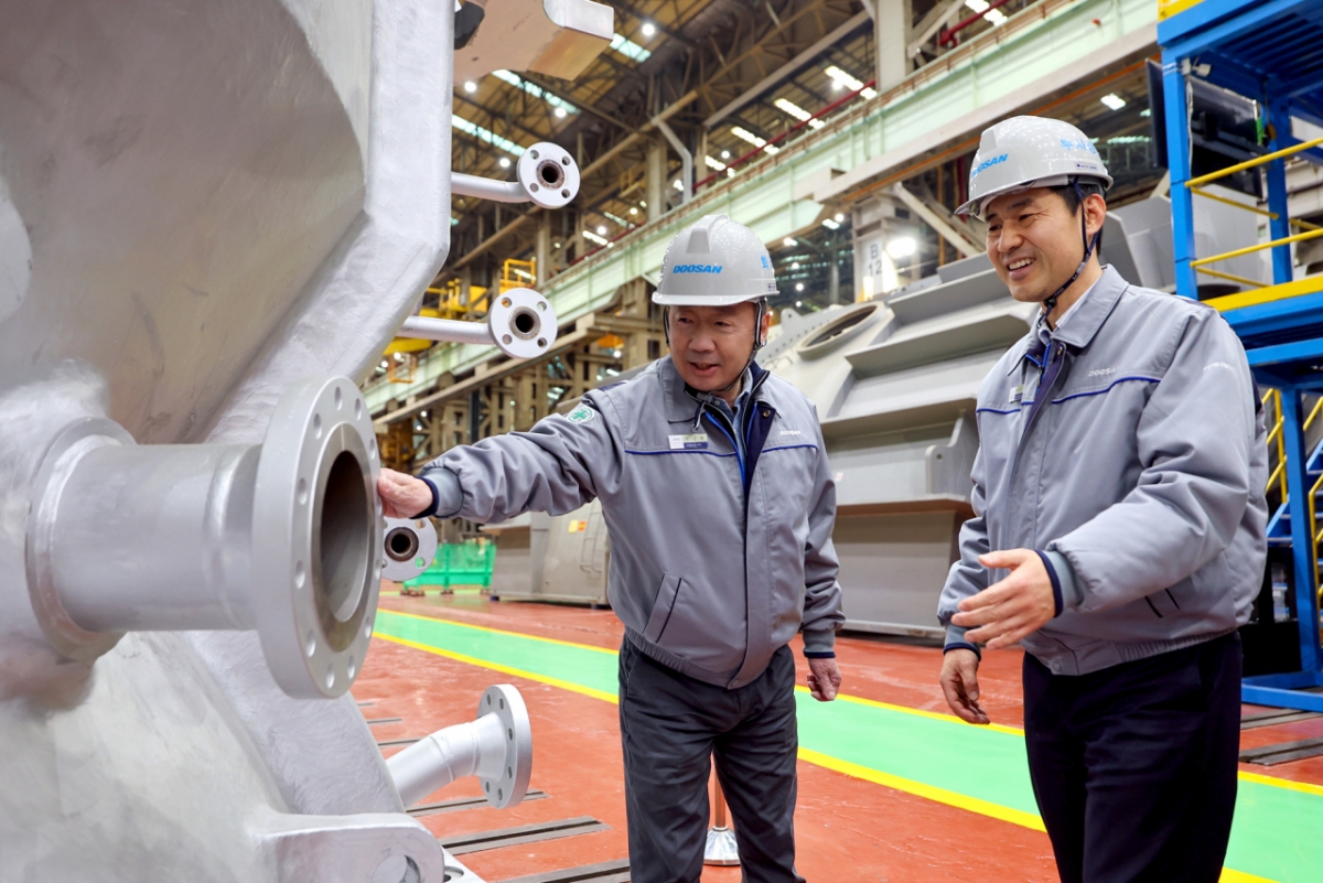 지난 11일에는 경남 창원 두산에너빌리티 사업장을 방문해 발전용 가스터빈 공장과 SMR(소형모듈원전) 주기기 제작라인을 집중적으로 둘러봤다. 박 회장은 동행한 경영진에게 "AI(인공지능) 대전환기를 맞아 에너지 사업 분야에 큰 기회의 장이 열렸다"며 "그간 축적해 온 역량을 바탕으로 글로벌 경쟁력을 한층 강화해서 확대된 기회를 잘 살려야 한다"고 당부했다.