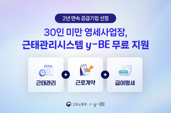 y-BE는 2025년 동일 사업에서 영세사업장을 대상으로 'HR(인적자원) 서비스'를 안정적으로 운영한 실적을 인정받아 2년 연속 선정됐다. 이번 사업은 근태관리시스템 도입 비용 부담을 낮추고 영세사업장의 노동법 준수를 돕는 정부 지원 프로젝트다. 상시 근로자 30인 미만 영세사업장을 대상으로 기업당 최대 180만원을 지원한다.
