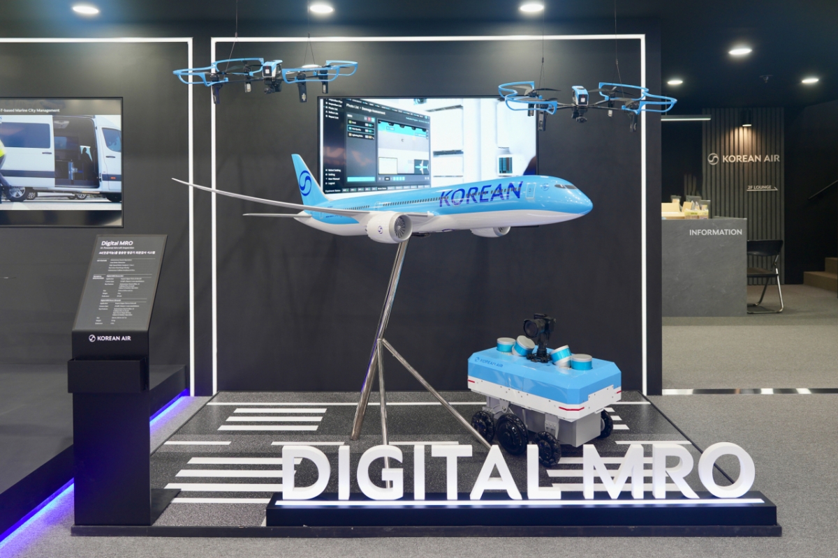 대한항공은 이번 전시에서 복층 구조로 이뤄진 넓은 부스 공간을 마련해 방문객들이 보다 효율적인 동선으로 관람할 수 있도록 했다. 1층에는 자체 기술력을 직접 살펴보고 교류하는 전시장·회의실로, 2층에는 라운지 공간으로 구성했다.