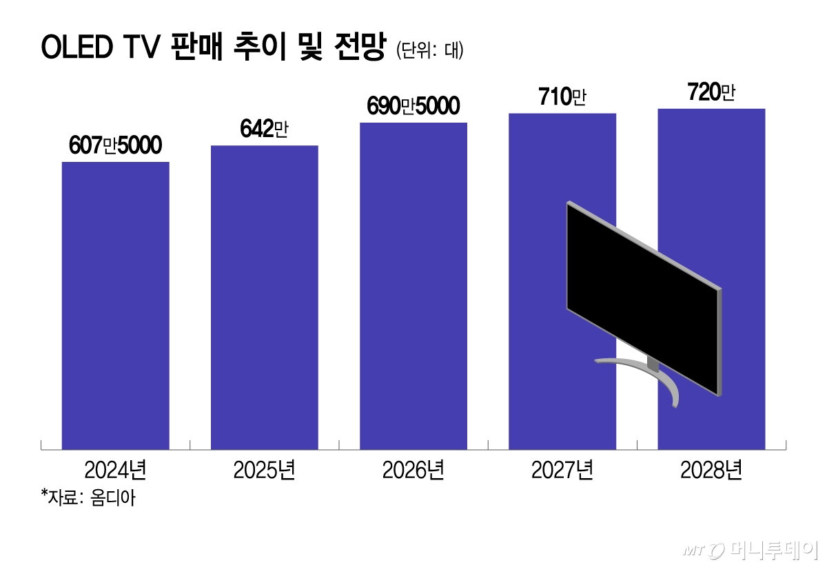 판매량 확대도 추진한다. 올해 TV와 모니터용 대형 OLED 출하량 목표를 지난해보다 약 10% 늘어난 700만대 초반 수준으로 잡았다. 글로벌 경기 불확실성에도 프리미엄 TV 시장에서는 OLED TV 수요는 꾸준히 증가할 것으로 예상된다. 지난해 글로벌 TV 시장이 정체된 가운데서도 OLED TV 판매량은 5.7% 증가했다. 올해 역시 OLED TV 시장은 약 7.6% 성장할 것으로 보인다.