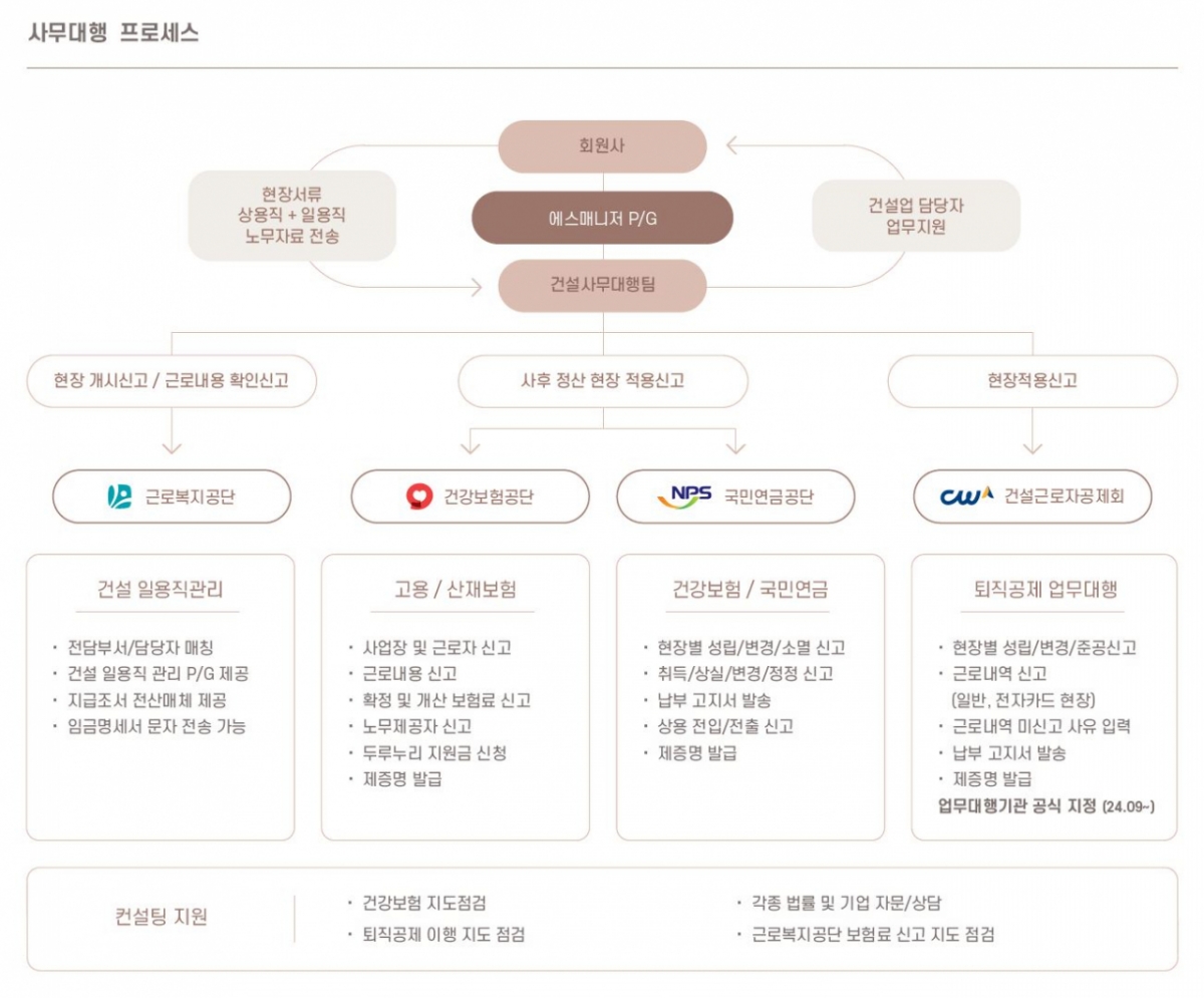 서진씨엔에스는 30년 가까이 업계를 선도해 온 건설 통합 IT 플랫폼 기업으로서 근로복지공단으로부터 보험사무대행기관으로 공식 인가를 받아 4대보험을 비롯한 건설업 전반의 보험사무대행 서비스를 제공해왔다. 특히 지난 2021년 근로복지공단 우수보험사무대행기관 선정 이후, 전문 사무대행 서비스 기업으로서의 입지를 더욱 공고히 하고 있다.