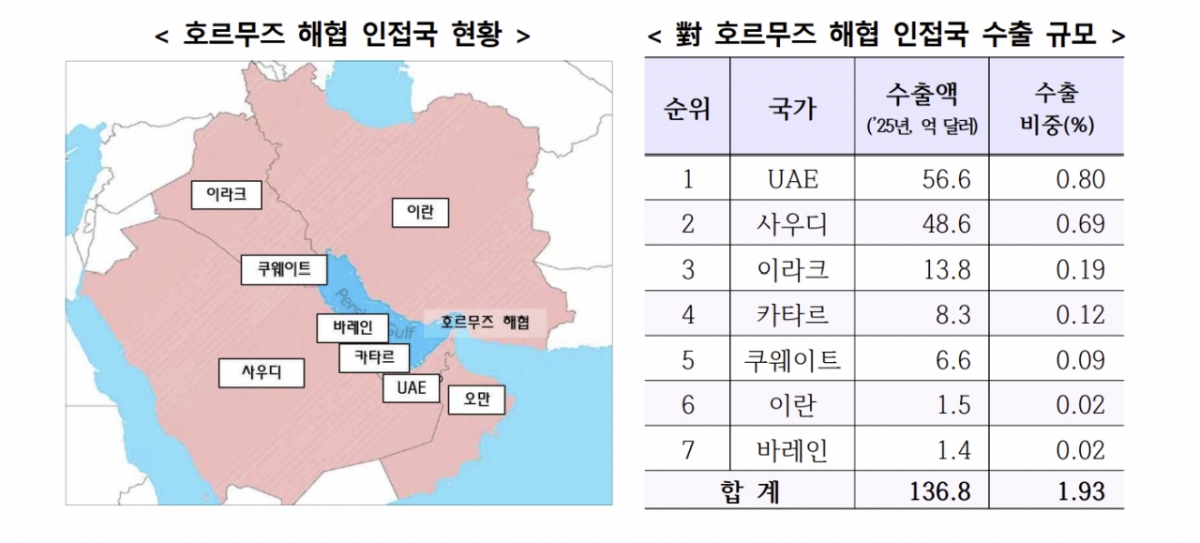 또 한국이 원유의 70.7%, 액화천연가스(LNG)의 20.4%를 중동에서 수입하고 있는 점을 언급하며 "세계 석유 해상 교역량의 27%(2024년 기준)가 호르무즈 해협을 통과하기 때문에 해협 봉쇄가 이뤄진다면 전 세계 원유 및 천연가스 공급 충격이 예상된다"고 밝혔다.
