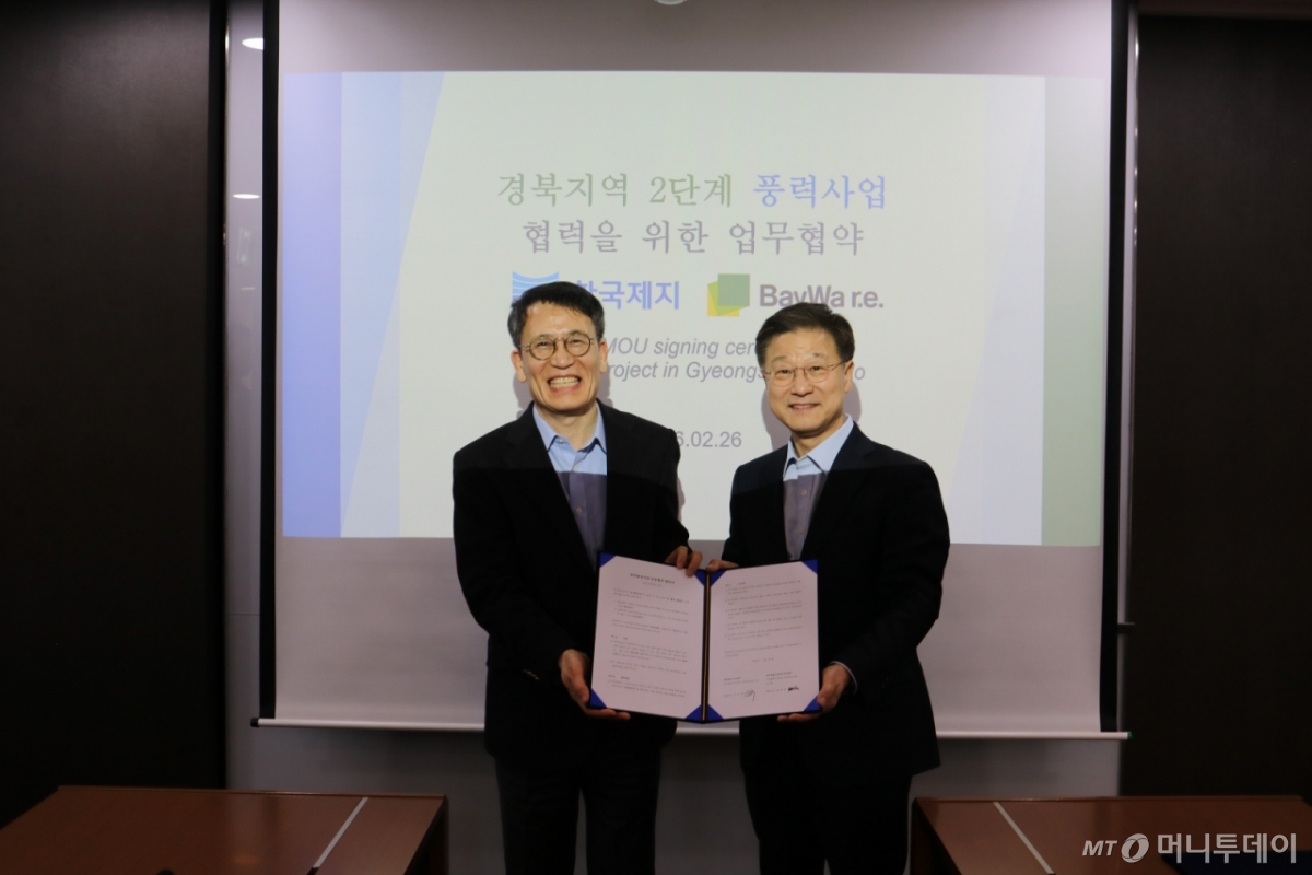 배양호 바이와알이 한국법인 대표는 "이번 2단계 협약은 경북 지역에서의 사업 기반을 더 공고히 하는 계기"라며 "한국제지와의 협력으로 지역과 상생하는 풍력단지 클러스터를 조성하고 기업들의 RE100(재생에너지 전력 100%) 수요에 대응하는 안정적인 재생에너지 공급을 확대해 나가겠다"고 강조했다.