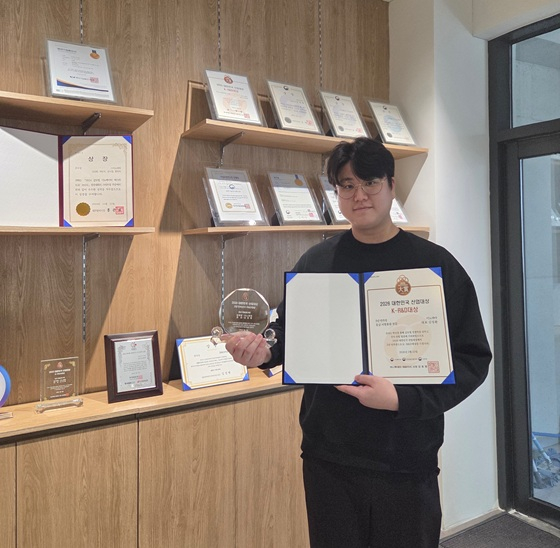 박민석 이노파마 연구소장이 머니투데이 주최의 '2026 제12회 대한민국 산업대상'에서 응급 지혈용품 부문으로 2년 연속 'K-R&D대상'을 비대면 수상하고 기념사진을 촬영 중이다.