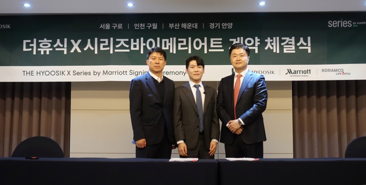 종합 숙박 솔루션 기업 더휴식(공동대표 신현욱·김준하)은 지난 2월 26일 아늑호텔 인천 구월에서 메리어트 인터내셔널과 '시리즈 바이 메리어트(Series by Marriott)' 브랜드 계약 체결식을 진행했다고 밝혔다. 이날 행사에는 더휴식과 메리어트 인터내셔널을 비롯해 아늑 시그니처 서울 구로, 아늑호텔 인천 구월을 보유한 코람코라이프인프라리츠 관계자들이 참석했다.