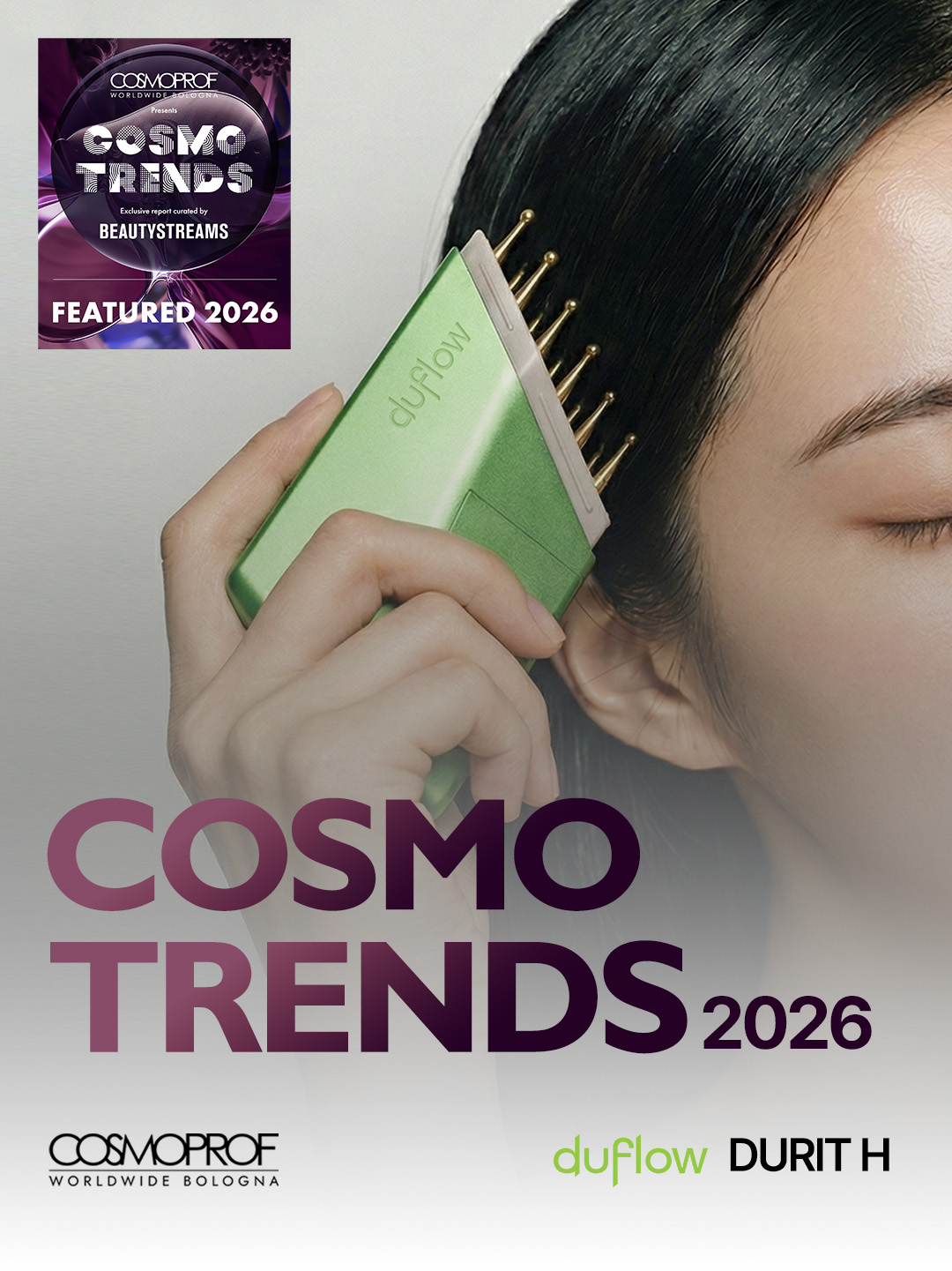 글로벌 뷰티 솔루션 기업 (주)일론(대표 박라미)의 미세전류 괄사 홈뷰티 디바이스 브랜드 '듀플로우(DUFLOW)'가 세계 최대 규모의 뷰티 박람회인 '2026 코스모프로프 Worldwide 볼로냐'에서 공식 트렌드 리포트인 '코스모트렌드(CosmoTrends)'에 최종 선정되었다고 밝혔다.