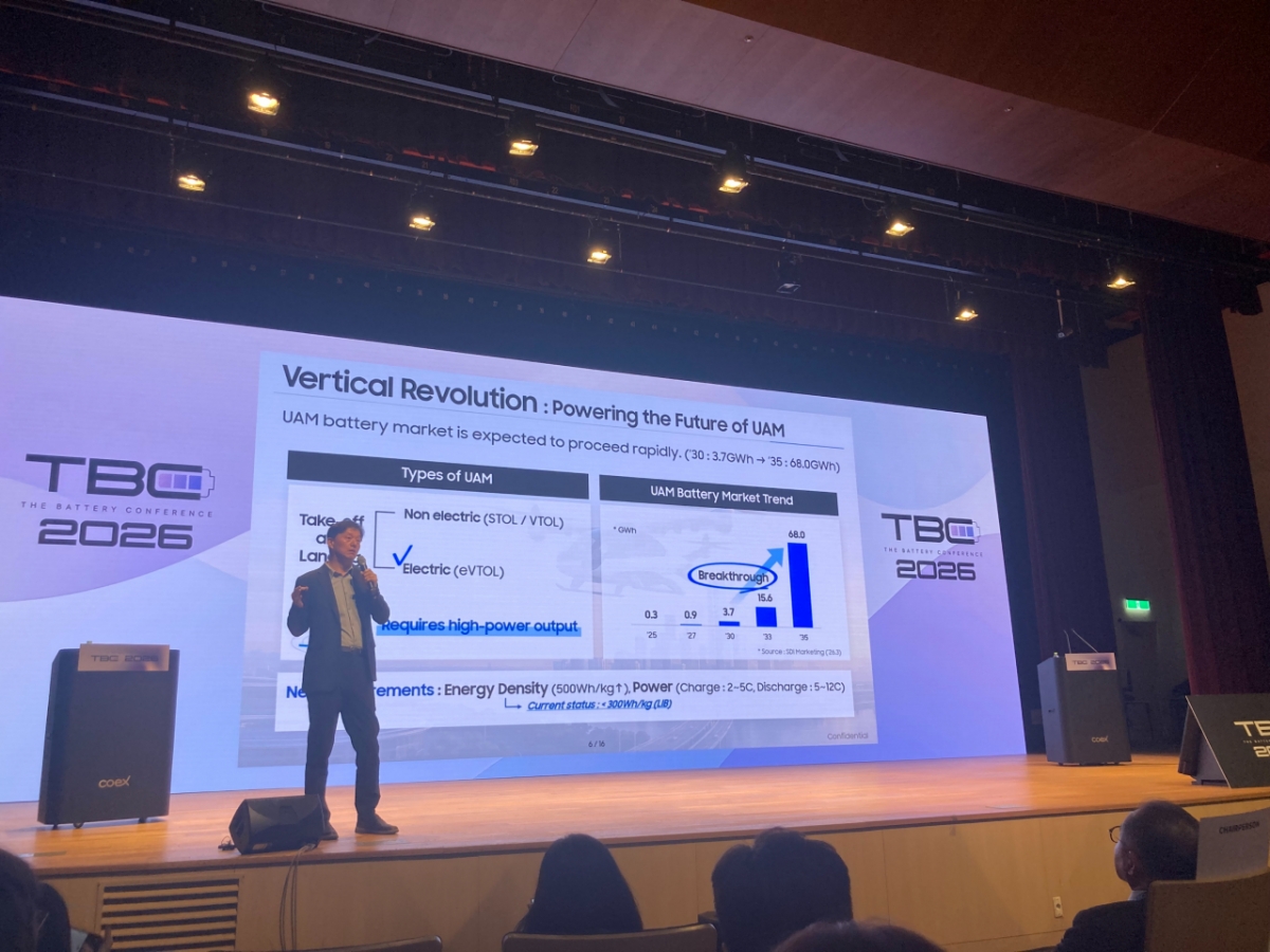 주용락 삼성SDI 연구소장은 11일 서울 강남구 코엑스에서 열린 '인터배터리 2026 더 배터리 컨퍼런스(The Battery Conference)'에서 "특화된 각형, 전고체 기술 등을 최대한 활용해서 ESS(에너지저장장치), UAM(도심항공교통), 로보틱스에 필요한 배터리 솔루션을 제공할 것"이라며 "이런 솔루션 제공을 통해 캐즘(Chasm, 일시적 수요둔화) 위기를 돌파하겠다는 전략"이라고 밝혔다.