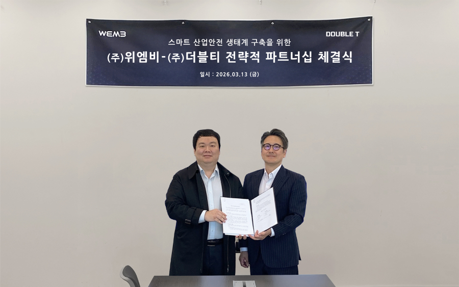 더블티(대표 김영준)가 위엠비(대표 김수현)와 '스마트 산업안전 생태계 구축'을 위한 업무협약(MOU)을 체결했다고 19일 밝혔다.