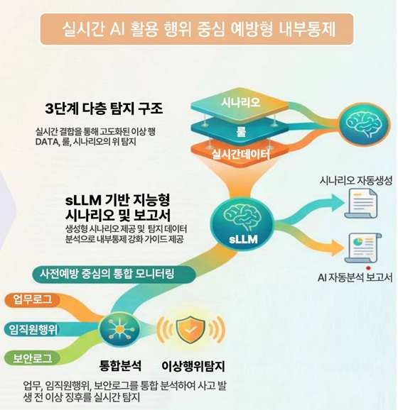 회사가 공급하는 AI 실시간 내부통제 모니터링 시스템은 실시간 데이터 분석과 다층 탐지 구조를 기반으로 한다. AI로 이상 징후를 사전에 감지하고 통제·대응까지 연계한다. 업체 관계자는 "사후 점검 중심의 기존 내부통제 방식에서 벗어나 리스크를 실시간 관리할 수 있는 체계를 구현했다"며 "인력 의존도를 줄이면서도 규제 변화에 신속히 대응할 수 있도록 설계했다"고 말했다.