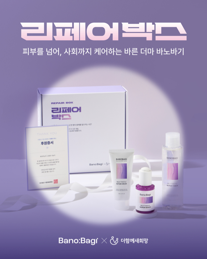 리얼 더마 브랜드 바노바기(BANOBAGI)가 (사)더함께새희망과 손잡고 미혼모 가정을 지원하는 '리페어 박스(Repair Box)' 캠페인을 진행한다고 밝혔다. 이번 캠페인은 기업 기부와 시민 참여형 정기후원을 결합한 사회공헌 프로그램으로, 미혼모 가정의 생활 안정과 자립 지원을 목표로 기획됐다.