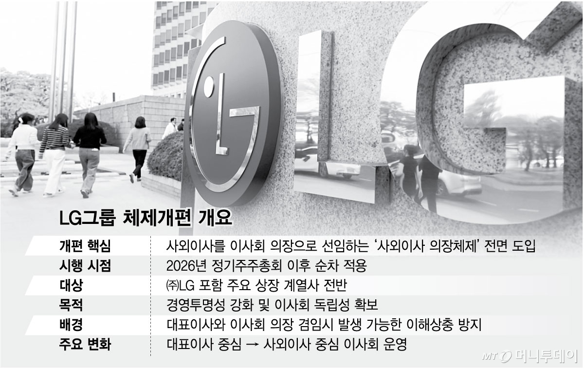 앞서 지난달에는 LG화학(조화순 연세대 정치외교학과 교수) LG디스플레이(오정석 서울대 경영학과 교수) LG에너지솔루션(박진규 고려대 기업산학협력센터 특임교수) HS애드(강평경 서강대 경영학과 교수) 등이 사외이사를 이사회 의장으로 선임했다. LG이노텍과 LG헬로비전은 2022년 이미 사외이사 의장체제를 도입했다. LG그룹 내 나머지 상장사들도 이달 중에 이사회를 통해 사외이사 의장체제로 전환할 것으로 예상된다.