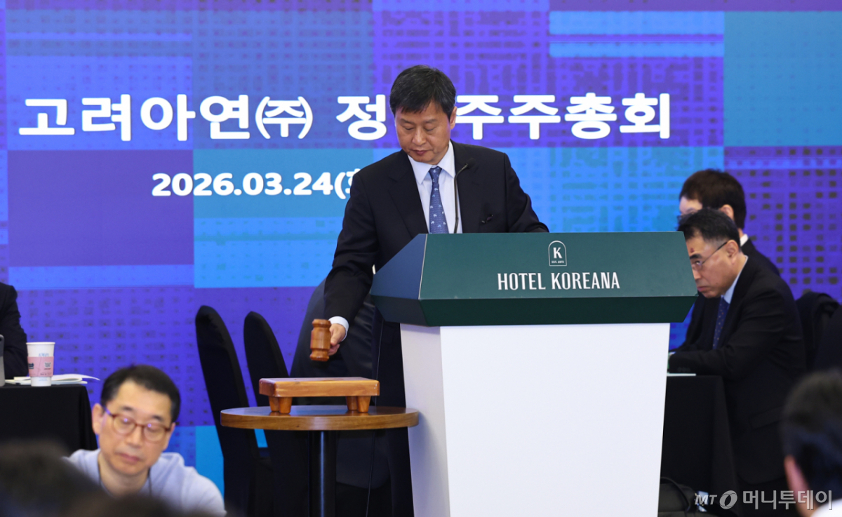 '제52기 고려아연 정기주총'은 24일 서울 중구 코리아나호텔에서 열렸다. 주총의 주요 관건이었던 이사 선임 숫자와 관련한 표대결에서 최 회장 측이 웃었다. 임기 만료 등으로 물러나는 6명(최윤범 측 5명, MBK·영풍 측 1명)을 대신할 이사들을 선임해야 했는데 최 회장 측은 5명만 우선 선임하고 남은 1명은 감사위원 분리선임 절차를 통해 확정해야 한다는 입장을 고수해왔다. MBK·영풍은 이사 6명 모두를 이번 주총에서 일괄 선임해야 한다고 주장했다.
