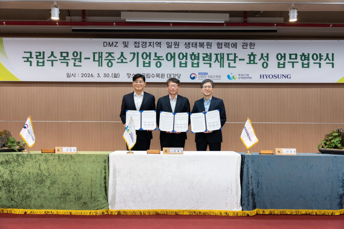 ㈜효성, 효성티앤씨㈜, 효성중공업㈜, 효성화학㈜ 등 4개사는 국립수목원·상생협력재단과 'DMZ 및 접경지역 생태복원 협력을 위한 업무협약(MOU)'을 체결했다고 31일 밝혔다.