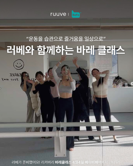 '러베 바레 클래스'는 오는 4월 4일 오후 3시 약 60분간 진행되며, 50명 한정으로 참여할 수 있다. 전문 강사 홍예지와 함께하는 이번 프로그램은 신체 균형과 유연성 향상을 돕는 바레 운동을 통해 일상 속 피로를 완화하고 재충전의 시간을 제공하는 것이 특징이다.