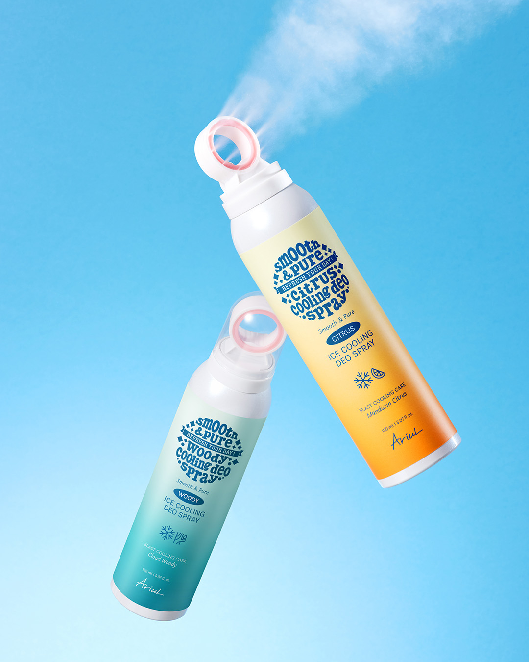아리얼(Ariul)이 여름철 바디 케어를 위한 '스무스 앤 퓨어 아이스 쿨링 데오 스프레이' 2종을 출시했다고 밝혔다.