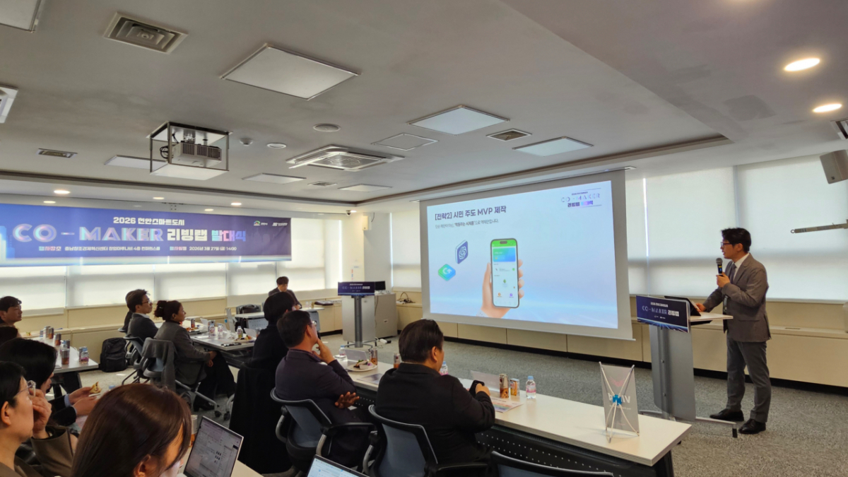 천안시는 지난 27일 충남창조경제혁신센터 창업마루나비 4층 컨퍼런스룸에서 '2026 천안 스마트도시 CO-MAKER 리빙랩 발대식'을 개최하고, 시민 참여 기반의 스마트도시 조성 사업 추진을 공식화했다고 밝혔다.
