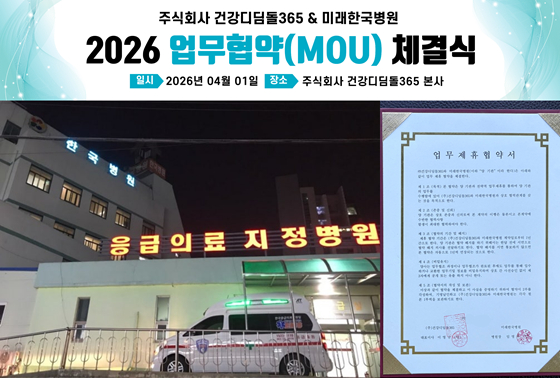 산업현장 특수건강검진 플랫폼 기업 건강디딤돌365(대표 이영규)가 미래한국병원(병원장 임영국)과 디지털 특수건강검진 서비스 구축을 위한 업무협약(MOU)을 체결했다고 3일 밝혔다.