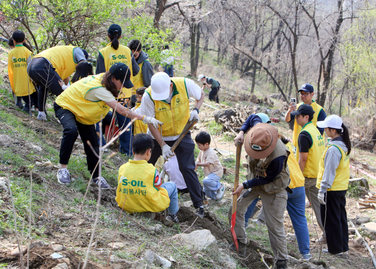 나무 심기 봉사활동은 S-OIL이 2024년부터 도심 숲 조성에 기여하기 위해 매년 식목의 달에 개최하는 프로그램이다.