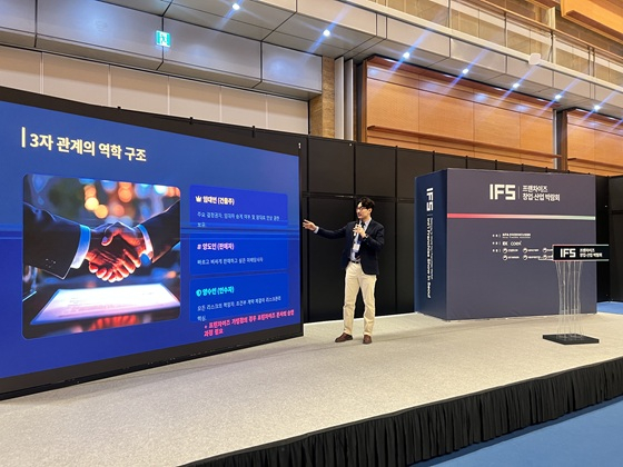 자영업 양도양수 플랫폼 '내일사장'의 박규태 대표가 '2026 IFS 프랜차이즈 창업·산업 박람회'에서 자영업자의 권리 양도·양수 실무를 짚었다.