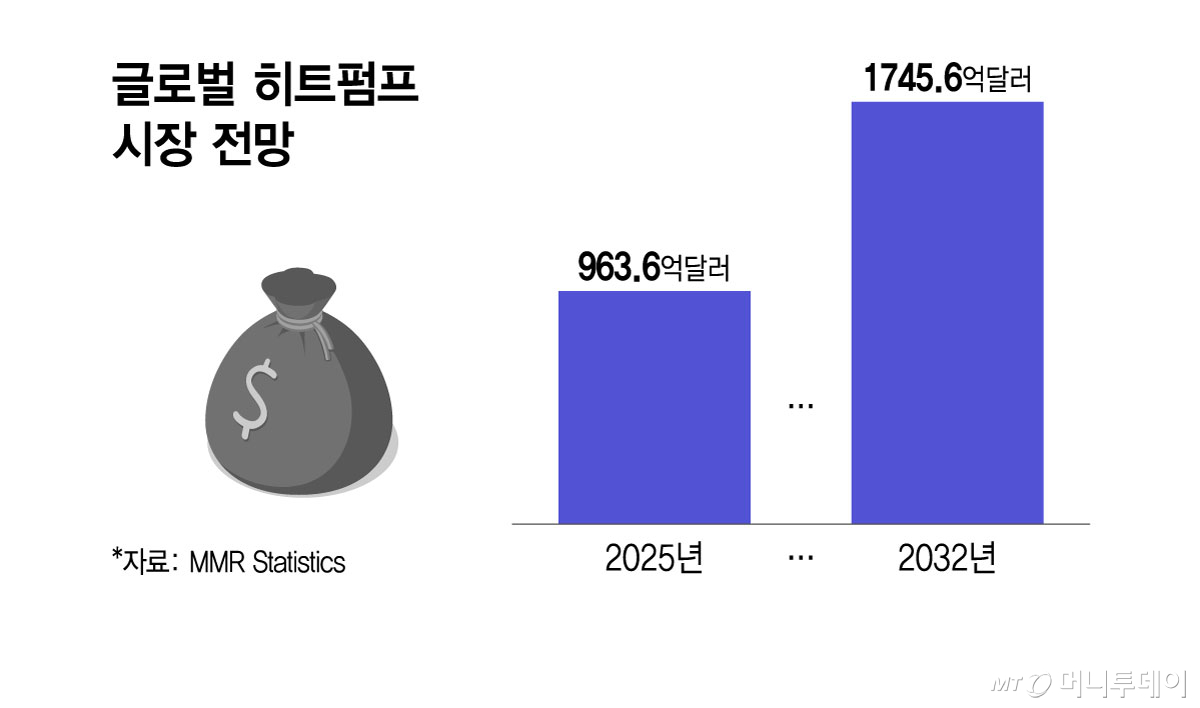 10일 글로벌 시장조사업체 MMR 스태티스틱스에 따르면 HVAC(냉난방공조)용 히트펌프 시장은 2032년 1745억6000만달러(260조원) 규모로 성장할 전망이다. 지난해 963억6000만달러(143조원)에서 연평균 약 9% 성장하는 셈이다.