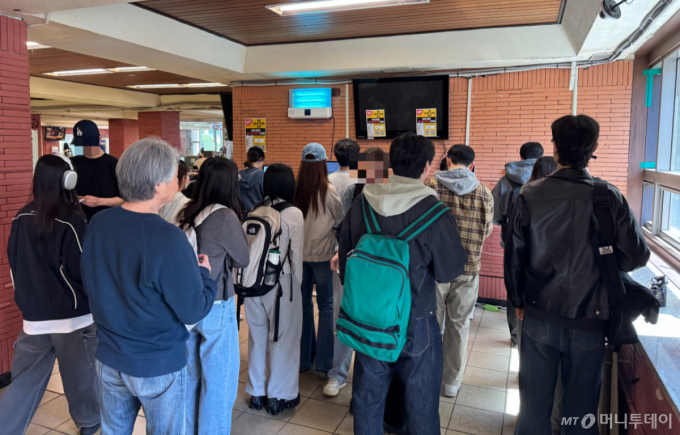 점심시간이 되자 교내식당은 학생들로 빠르게 들어찼다. 이날 낮 12시쯤에는 수업을 마친 학생들로 식당 앞 긴 줄이 이어졌다. 식권을 사기 위해 키오스크 앞에 줄을 선 2학년 정모씨(21)는 "요즘은 점심시간마다 항상 붐빈다"며 "인기 메뉴가 나오는 날은 줄이 훨씬 길다"고 말했다.