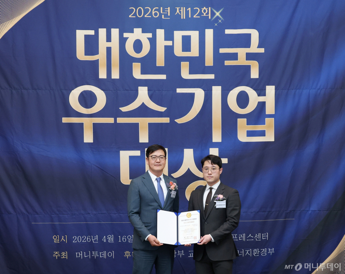 김대환 하이젠에이아이 연구소장(사진 오른쪽)이 16일 오후 서울 중구 한국프레스센터에서 열린 머니투데이 주최의 '2026 제12회 대한민국 우수기업대상' 시상식에서 'AI 기반 소프트웨어 기술' 부문 '우수스타트업대상'을 수상하고 송기용 머니투데이 전무와 기념사진을 촬영 중이다.