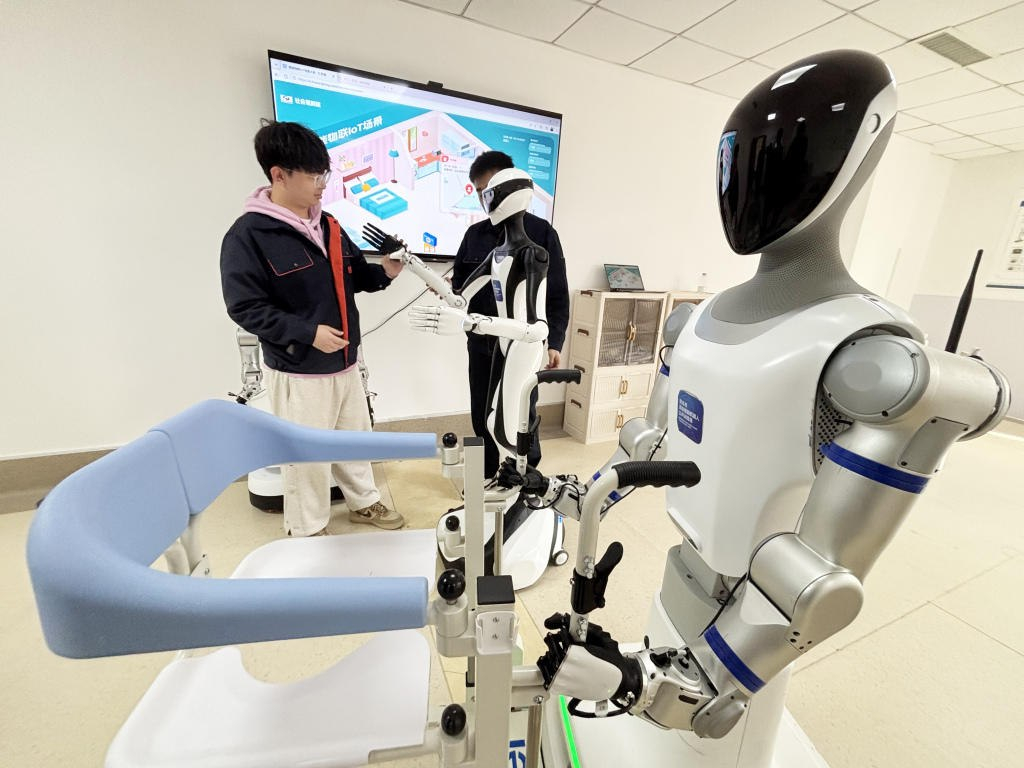 재활 및 건강 지원 분야에서도 적용 사례가 확인되고 있다. 특히 질병이나 부상 이후 기능 회복이 필요한 노인을 중심으로 활용이 확대되고 있다. 청톈테크의 '타이시' 외골격 로봇은 전국 여러 지역에서 활용된다. 이 로봇은 생체역학 모델을 기반으로 다양한 체형과 근긴장 이상 환자에 맞춰 운동 의도를 정밀하게 인식하며, 주로 뇌졸중이나 척수 손상 등으로 보행에 어려움을 겪는 노인의 재활을 지원한다.